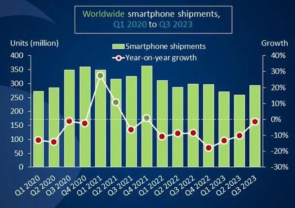 Společnost Canalys na základě svých předběžných dat informuje, že celosvětový trh chytrých telefonů ve třetím čtvrtletí 2023 vykázal mírný 1% pokles. To podle analytiků signalizuje, že je trh na dobré cestě ke stabilizaci.