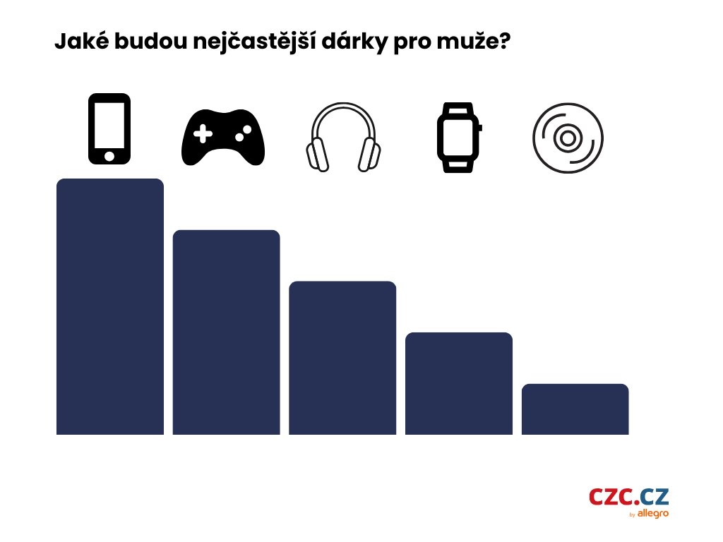 „V kategorii dárků pro muže se pak dělí o první tři místa mobilní telefony, herní příslušenství, sluchátka (chytré hodinky jsou v těsném závěsu). Samostatnou kategorií jsou dárky pro děti a dospívající, tady je pořadí následující: sluchátka, herní příslušenství, mobilní telefony, hry pro PC nebo konzoli a chytré hodinky,“ dodává.