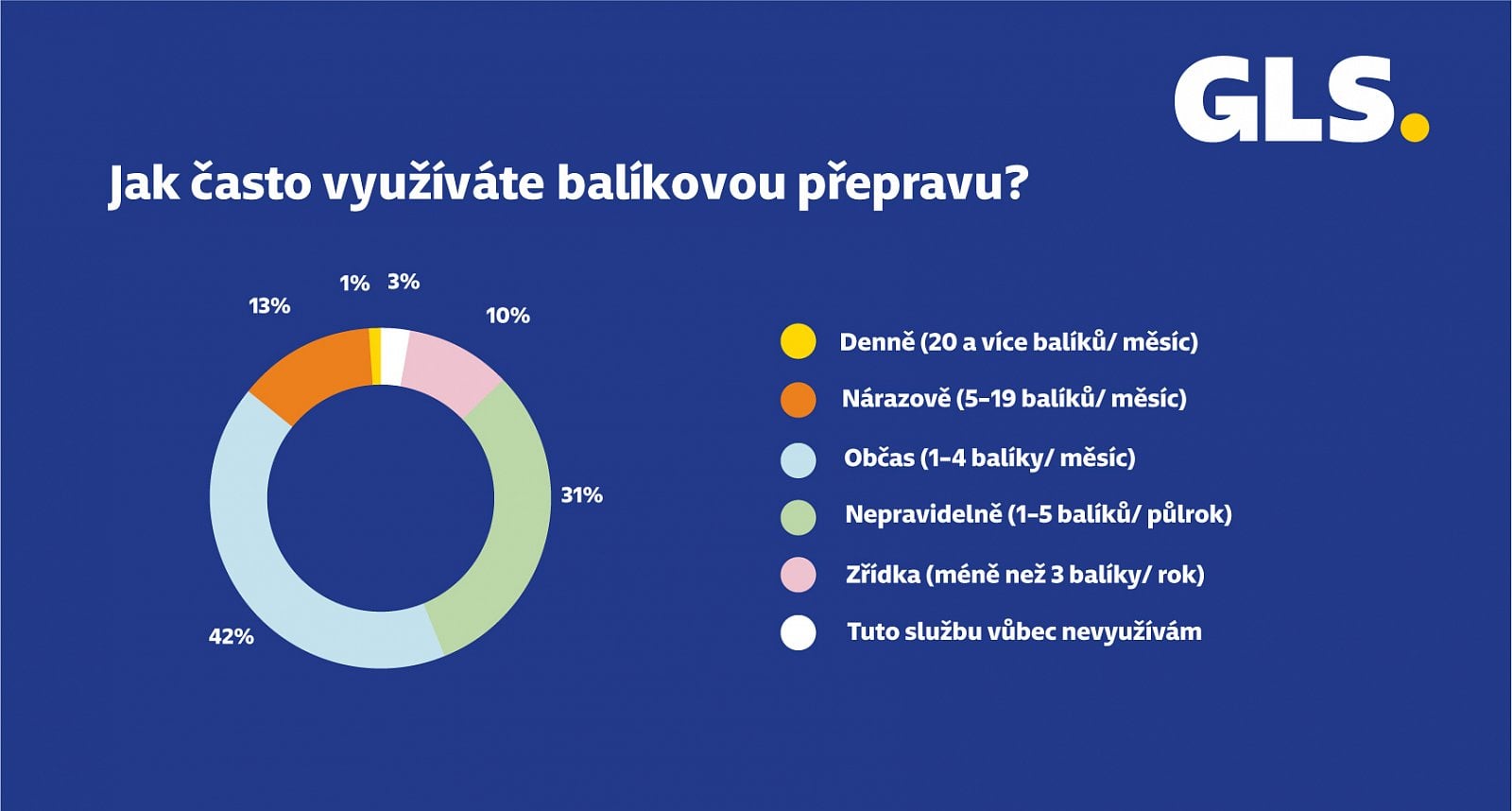 Společnost GLS zjistila, že balíkovou přepravu pravidelně využívá rok od roku více lidí. Minimálně jeden balík do měsíce posílá nebo přijímá již více než polovina Čechů (56 %), přičemž u 13 % jde dokonce o pět až 19 zásilek měsíčně.