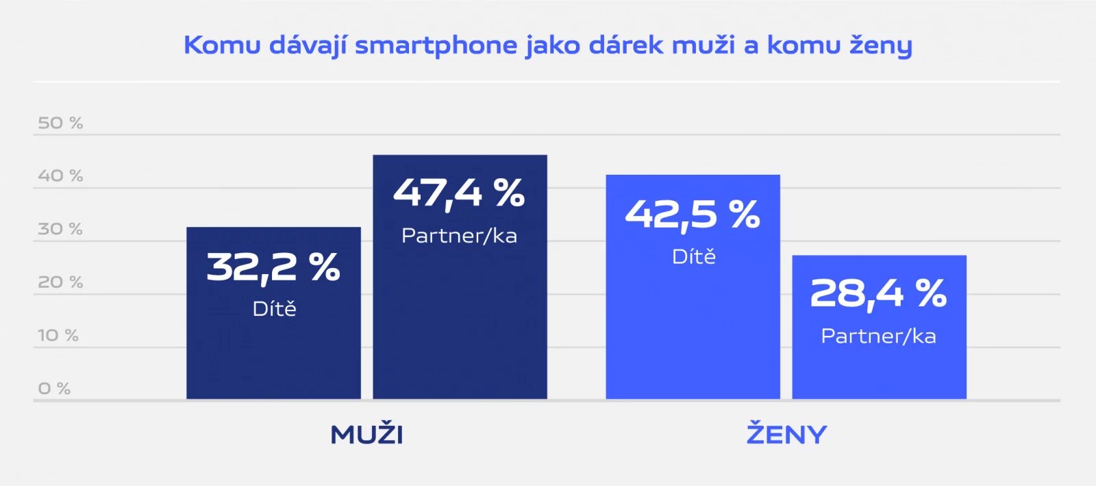 Analytici identifikovali též zajímavé trendy u jednotlivých pohlaví. Zatímco ženy častěji než muži kupují chytré telefony dětem, muži naopak výrazně častěji než ženy obdarovávají mobilem své partnery.